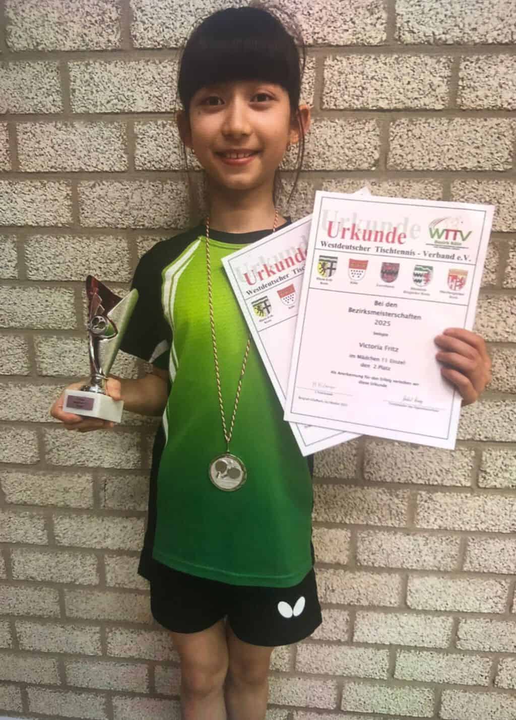 - Bei den Jüngsten wird Victoria Fritz Vize-Bezirksmeisterin Mädchen U 11 sowohl im Einzel und als auch im Doppel.